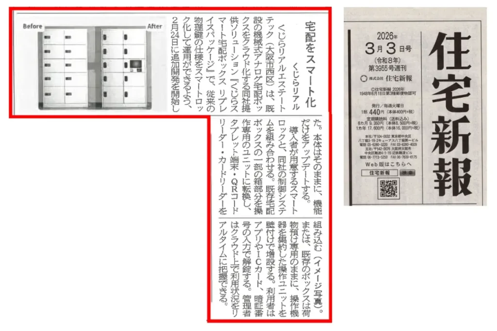 「くじらスマート宅配ボックス リプレイスパッケージ」に関する記事が掲載されました。
